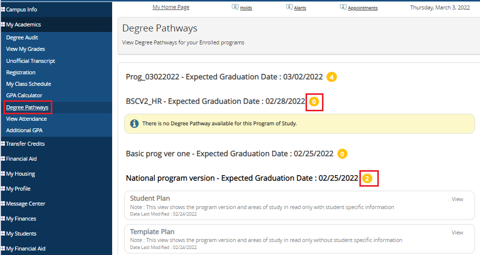 Navigate to My Academics > Degree Pathways. The Degree Pathways page is displayed.