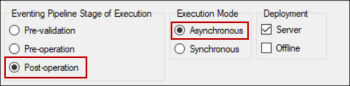 Select Post-operation in the Event Pipeline State of Execution area, and select Asynchronous in the Execution Mode area: