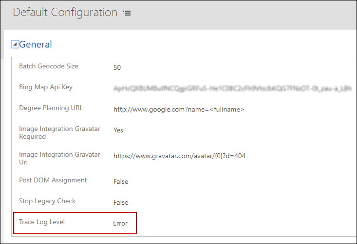 In addition to the above configuration, the verbosity of the tracing messages can be controlled by selecting a trace level in the Trace Log Level option in the General section of the Default Configuration (under Settings > Configurations). By default, the trace level is set to Error, which adds traces of level Error.
