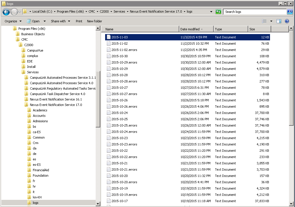 Program Files (x86)\CMC\C2000\Services\Nexus Event Notification Service <version>\logs.