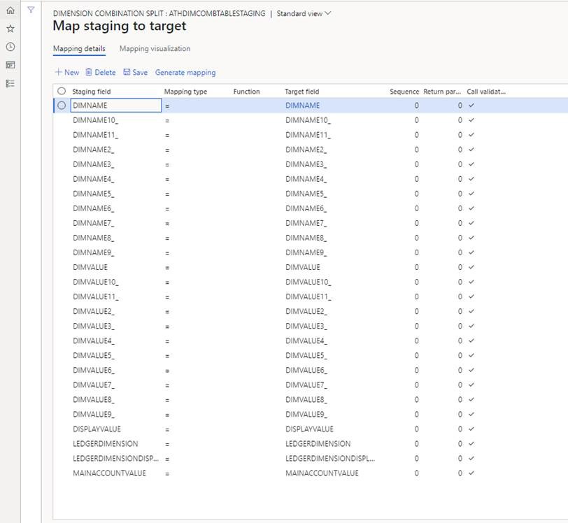 Using the 'Dimension combination split' entity for Reporting and Auditing