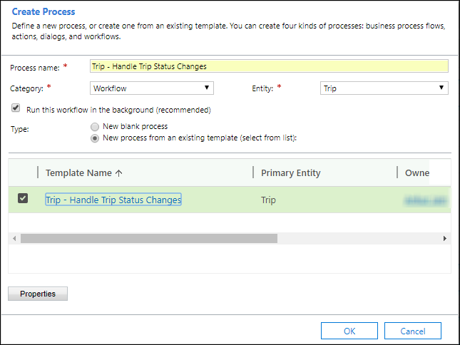 - Select the Trip - Handle Trip Status Change template