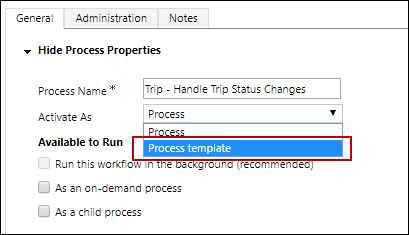 - In the General tab, select Process Template in the Activate As field.