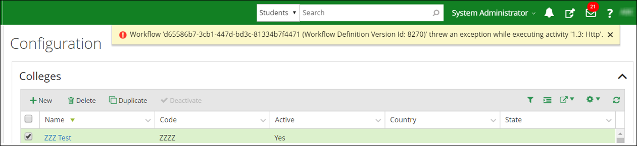 On saving a record in Anthology Student, users would encounter the following error: