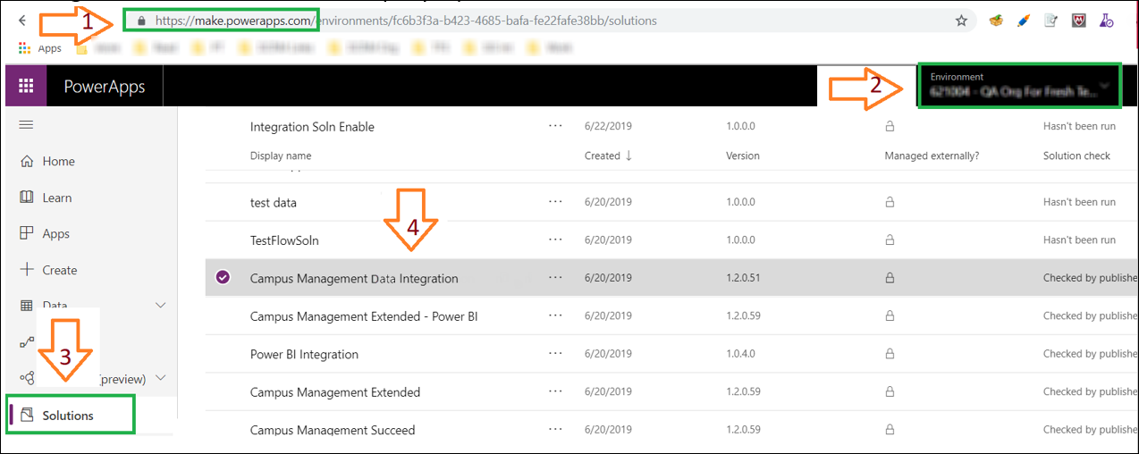 - Navigate to the Campus Management Data Integration solution (step 4 in the diagram) in https://make.powerapps.com (step 1), and: