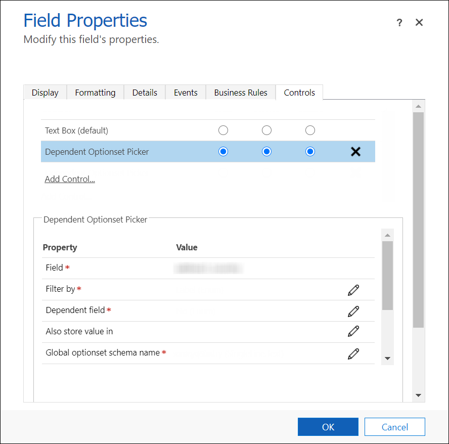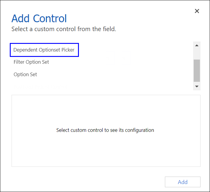- Select Dependent Optionset Picker and then click Add. The Dependent Optionset Picker section will be displayed.