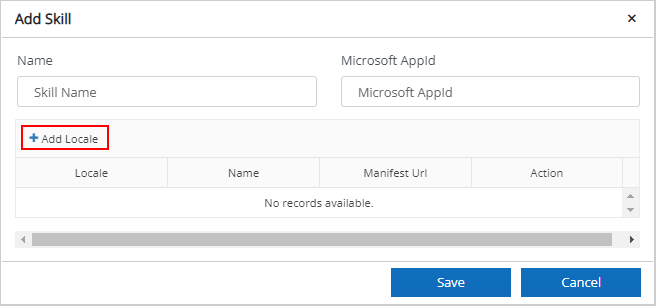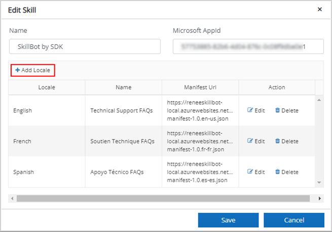 You can add, edit, and delete Locale details using the buttons displayed in the Edit Skill dialog.